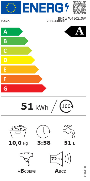 Με τη νέα ενεργειακή ετικέτα A, το BM3WFU41215 προσφέρει σημαντική εξοικονόμηση ενέργειας έναντι παλαιότερων μοντέλων. Τεχνολογίες όπως Recycled Tub δείχνουν τη δέσμευση για περιβαλλοντική φροντίδα, μειώνοντας απορρίμματα και χρήση πρώτων υλών. Το πρόγραμμα Eco 40-60 και το EnergySpin συνεργάζονται ώστε να επιτευχθεί όσο το δυνατόν πιο “πράσινη” πλύση, με λιγότερη κατανάλωση νερού και ρεύματος — χωρίς να θυσιάζεται η ποιότητα του καθαρισμού. Επίσης, το πλυντήριο προσφέρει δυνατότητα πλύσης με ψυχρό νερό (“coldwash”) όπου χρειάζεται, μειώνοντας την ενεργειακή δαπάνη.