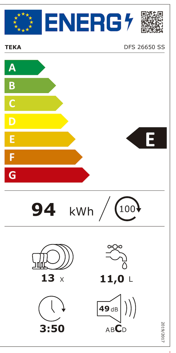Teka Ελεύθερο Πλυντήριο Πιάτων για 13 Σερβίτσια Π59.8xY84.5εκ. Inox DFS 26650 SSΚωδικός: 114280001